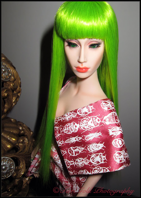 Sybarite Dionysis Posted by arsip on December 10, 2012 Get link Facebook X Pinterest Email Other Apps Here is my newest Sybarite, Dionysis. She is wearing one of the three dresses from the Bugged set. I thought the shocking green wig would go well with her eyes but I'm getting tired of the candy colored wigs.